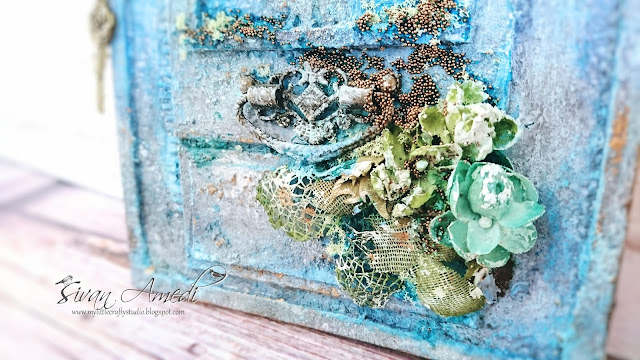 Today I share with you a new mixed media notebook. this time it's not altered project, I made that cover from 2.2 mm chipboards and made a secret door on front.